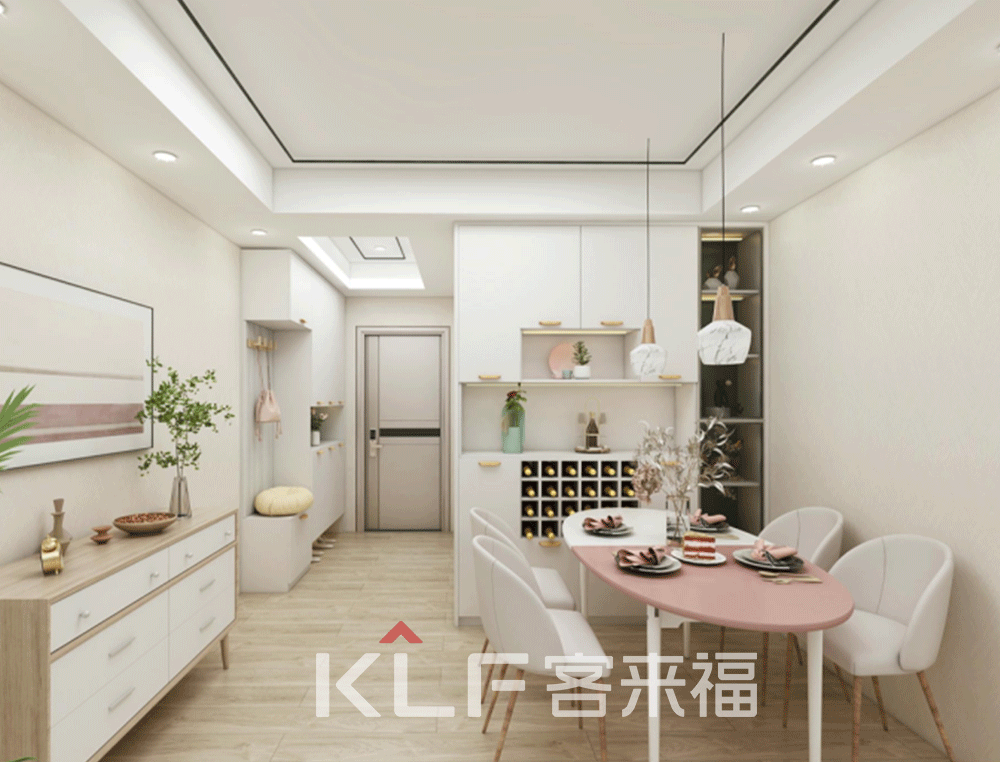 我們將廚房設(shè)置在了入戶的旁邊,整體顏色偏暗,更耐油煙污染。U型的操作臺(tái)可使夫妻二人配合更加貼切,地柜與吊柜的搭配組合,讓做飯時(shí)的調(diào)料放取收拿更加得心應(yīng)手。從廚房出來便是餐桌和酒柜了,開放式設(shè)計(jì)可隨手置物,充足的收納讓餐桌時(shí)刻保持干凈整潔。暖色調(diào)的搭配使得餐廳更有家的味道。再往里走就是客廳了,簡單的裝修實(shí)用且明朗。撞色設(shè)計(jì),讓客廳獨(dú)具溫暖與活力。