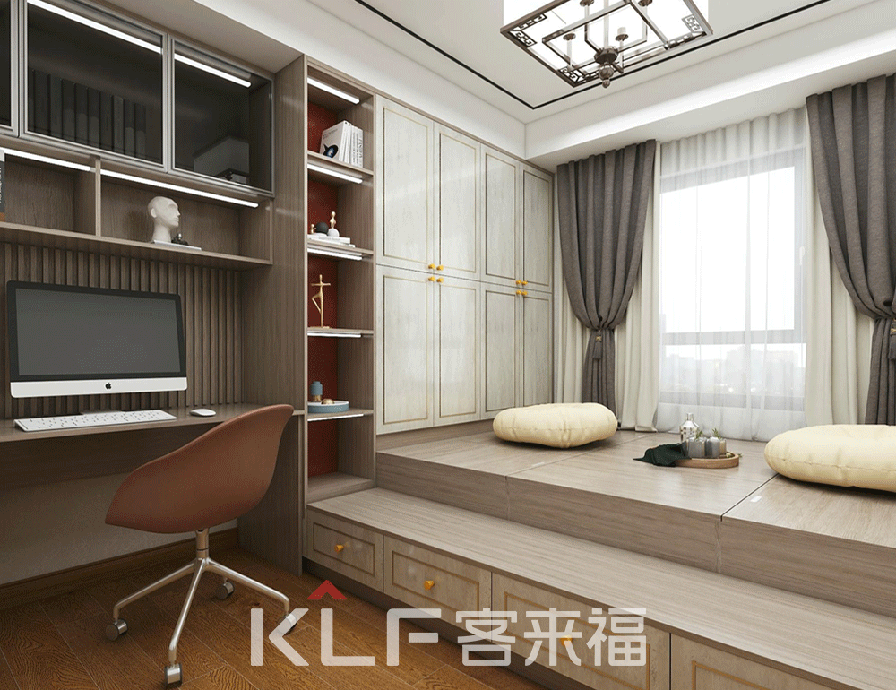 這一套裝修樣式的亮眼之處便是榻榻米房間,提起榻榻米很多人會(huì)想起日本,殊不知榻榻米的起源地卻在中國(guó)。因此我們?cè)谠O(shè)計(jì)之初汲取傳統(tǒng)榻榻米樣式的同并融合現(xiàn)代風(fēng)格,便有了現(xiàn)在的樣式。一壺茶、倆個(gè)人、一盤(pán)棋,共享休閑時(shí)光。