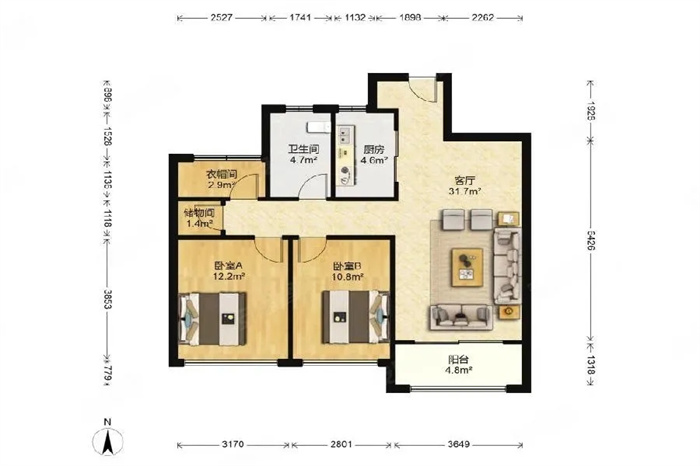 房屋面積:91.7平米