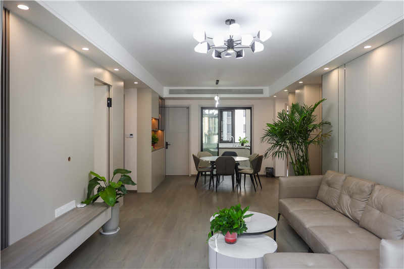 采用客餐廳一體化設(shè)計,讓光線無遮擋地自由延伸,整體通透清新,也不必拘束于劃分空間后的阻隔,居者關(guān)系更緊密??蛷d電視柜采用懸空設(shè)計,不藏灰,沒有衛(wèi)生死角。原木色+茶白的配色簡約耐看,抽屜的設(shè)計也很實用。