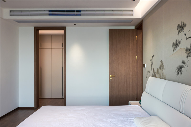 主臥突顯中式的浪漫氛圍,進(jìn)門風(fēng)景畫床頭背景墻映入眼簾。
