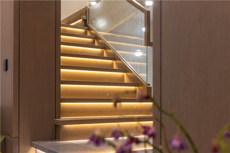 沒(méi)有采用繁復(fù)的裝飾物來(lái)營(yíng)造輕奢氛圍,更多利用設(shè)計(jì)與燈光去巧妙體現(xiàn)家居“奢”的氛圍,體現(xiàn)精簡(jiǎn)的設(shè)計(jì)理念。