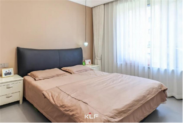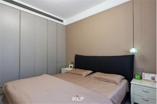 主臥一側(cè)到頂式衣柜,延展視覺,搭配銑槽拉手,讓衣柜擁有小亮點(diǎn);內(nèi)部合理分區(qū),讓小空間的收納力不容小覷;靠床可做小型展覽柜,個性化裝飾。