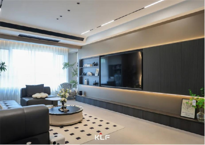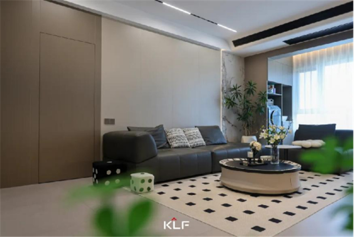 陽(yáng)臺(tái)鏈接客廳,打造出會(huì)客與觀影、觀景并存的空間。大面積落地窗增加通透感,搭配無(wú)主燈設(shè)計(jì),解鎖光的語(yǔ)言,光影藝術(shù)制造不容忽視的經(jīng)典韻味。
