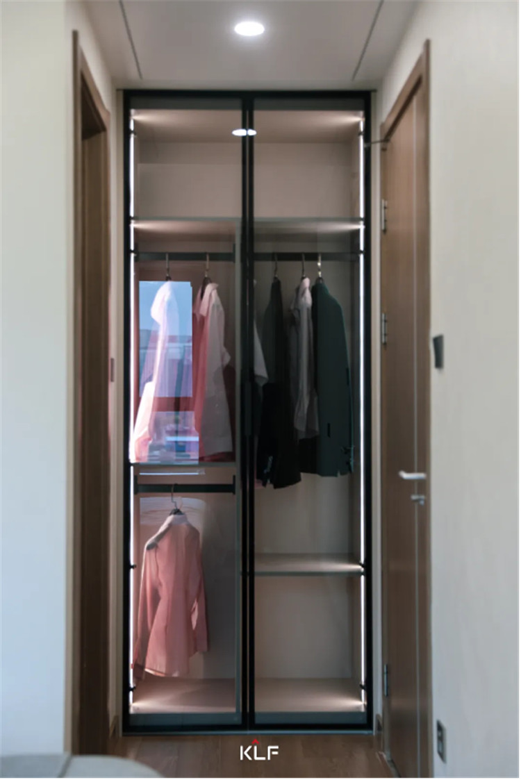 簡約的配色與簡單的衣柜設計,一柜到頂式增加儲物能力、半銑型拉手簡潔實用,其中跳色粉套格設計既時尚又具有一番創(chuàng)意,為舒適的空間帶去一絲趣味。