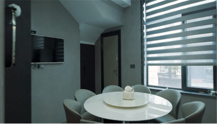 女兒房:一體化設(shè)計(jì)+藏八露二原則,整潔清爽;水洗灰柜門(mén)結(jié)合黑玻,美感在線。
