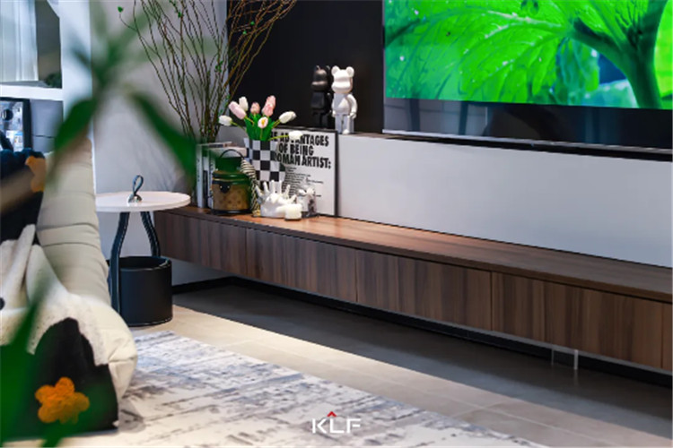 想要打造呼吸感十足的客廳,可以不做整面電視柜,以懸浮電視柜承擔起客廳收納功能更符合慵懶、松弛的家居氛圍。煙熏橡木色內斂沉穩(wěn),木作紋理間帶來歲月沉淀后的藝術氣息。