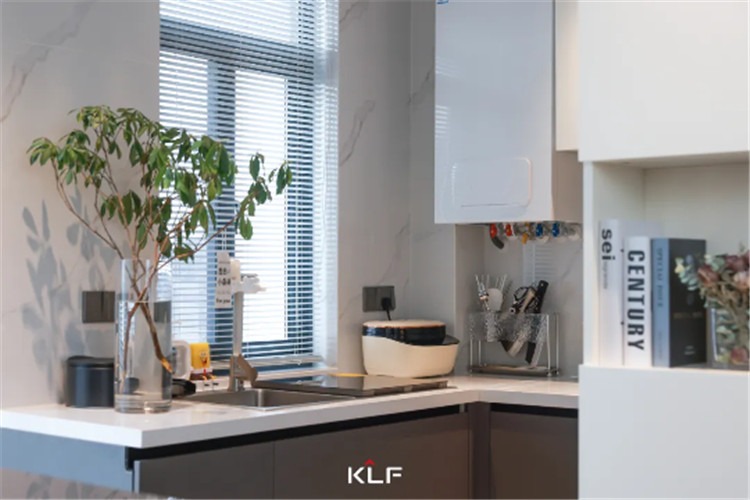 簡單利落的要求同樣運用在開放式餐廚空間中。利用好轉角空間打造U型廚房布局,是黃金動線,更是美味人生的刻不容緩。