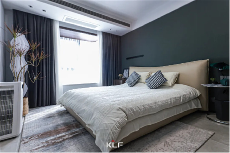 在主臥空間中沒有加以過多的設計,簡單的收納型衣柜+柔軟大床就是這個房間的主角,布魯灰衣柜樸素淡雅,收納能力卻是滿分。