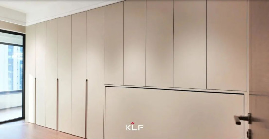 衣帽間采用“一門到頂”的設計,柜體與墻面接縫處不留縫隙,減少衛(wèi)生死角。衣柜內(nèi)部結構合理,分區(qū)明確。銑槽拉手柜門平整順滑,強迫癥黨看了表示超舒服。折疊床柜一體設計暗含巧思,打開便是一張折疊床,偶有客人留宿不是問題。