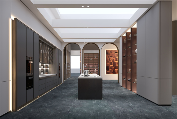 櫥柜+智能島臺的空間布局,既節(jié)省了空間,也優(yōu)化了家庭動線。廚房一半采用了嵌入式柜體,考究的布局和純實(shí)木門讓餐廚空間簡約大氣。島臺與烹飪區(qū)平行,空間明朗、清新自然。