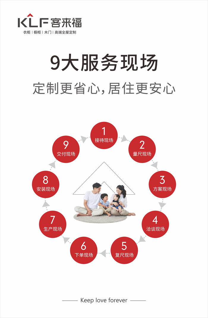 作為20年專注定制家居領(lǐng)域的知名品牌,客來(lái)福研究中國(guó)家庭的家居生活需求,為消費(fèi)者創(chuàng)造美好的生活環(huán)境,致力提升每個(gè)中國(guó)家庭的生活品質(zhì),確保產(chǎn)品迭代速度、產(chǎn)品健康性以及產(chǎn)品品類(lèi)的多選擇性。同時(shí),客來(lái)福完善的流程,貼心的售后,全流程服務(wù),裝修信息可視化,白手套工程讓消費(fèi)者在定制家居的過(guò)程中更省心。