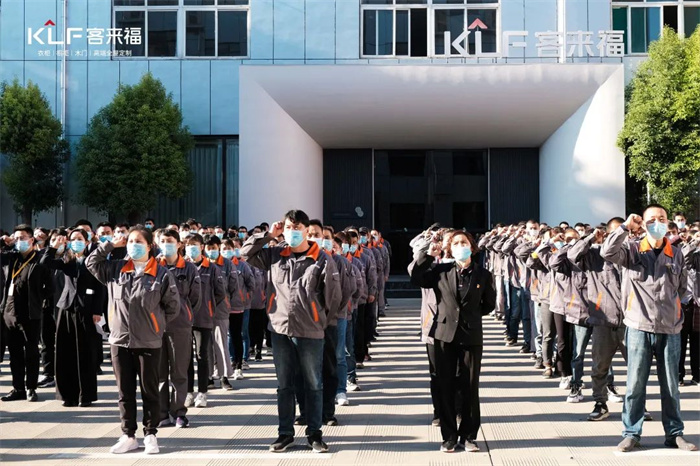 首先進(jìn)行的是升國旗奏國歌儀式,客來福家居作為民族企業(yè),始終堅(jiān)決地將愛國擁黨作為企業(yè)發(fā)展的首位。在飄揚(yáng)的旗幟下,客來福全員進(jìn)行企業(yè)價(jià)值觀宣讀,客來福家人們將通過不懈努力和精進(jìn)合作,實(shí)現(xiàn)品牌發(fā)展的美好愿景。