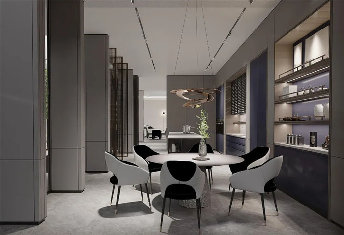 產(chǎn)品囊括了客廳、臥室、餐廳、衣帽間、書房等空間,讓家不僅僅是居住地,更是享受生活的地方??蛷d采用了一柜到頂?shù)娜X框架電視柜,背面搭配云石燈背景,簡約而不簡單;衣帽間采用時(shí)尚科技的電動平移巴士門,于細(xì)節(jié)之處彰顯魅力;餐廚空間墻面墻板整包,給人舒適溫馨之感;簡約式懸挑書柜設(shè)計(jì)搭配烤漆工藝超薄帶燈層板,氛圍感十足。