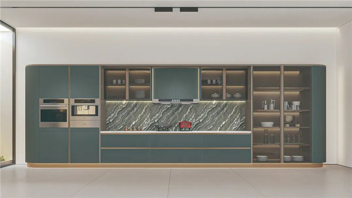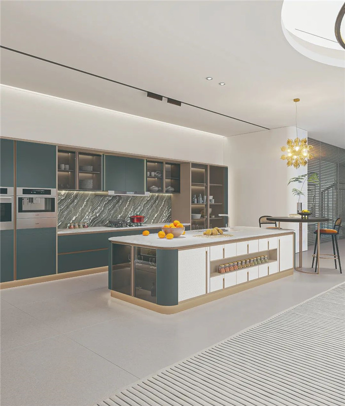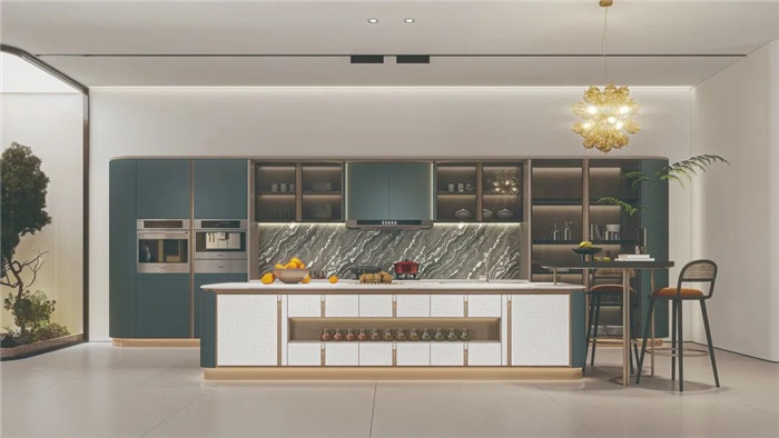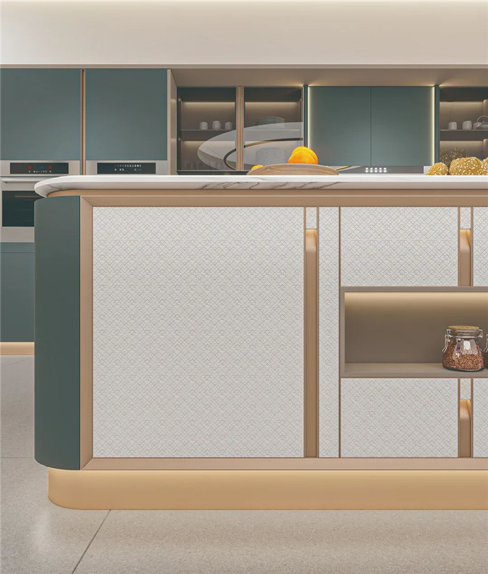 采用圓弧包邊設(shè)計(jì),將圓弧貫穿整套產(chǎn)品,勾勒溫潤柔和質(zhì)感。免拉手燈柱和鋁合金燈帶,盡顯高貴與優(yōu)雅。既富有意式侘寂的設(shè)計(jì)風(fēng)尚,也是對(duì)今年高定流行元素的創(chuàng)新性結(jié)合。