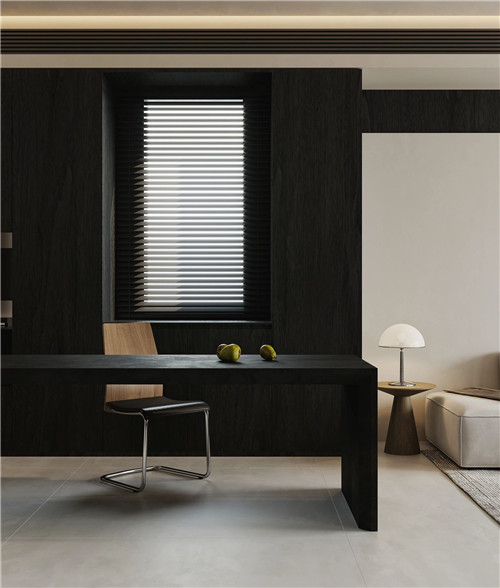 該套深色系裝修風(fēng)格,低調(diào)沉穩(wěn),適用人群也比較廣泛;黑胡桃山木紋散發(fā)出的奢華氛圍,襯托主人公的非凡格調(diào)。