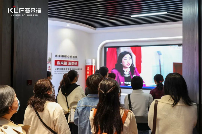 在魏總的帶領(lǐng)之下,來訪的領(lǐng)導(dǎo)與社員們來到了展廳內(nèi)的黨建文化處,在這里通過講解與視頻播放相結(jié)合的形式加深了大家對客來福家居「12358黨建文化」的了解。20年來,客來福家居一直以幸福為核心制定黨建文化工作綱領(lǐng),積極推進各項文化建設(shè),推動黨建工作與企業(yè)發(fā)展的融合互促,為中國特色社會主義事業(yè)貢獻力量。