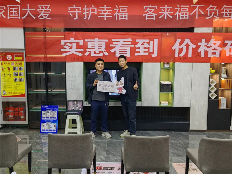 2023年5月8日—5月14日,客來福運(yùn)營督導(dǎo)劉杰、殷賢旗走進(jìn)甘肅隴西客來福店,和店面老板、銷售人員、設(shè)計人員一起開展“實惠看得到,價格砍到底”主題活動。