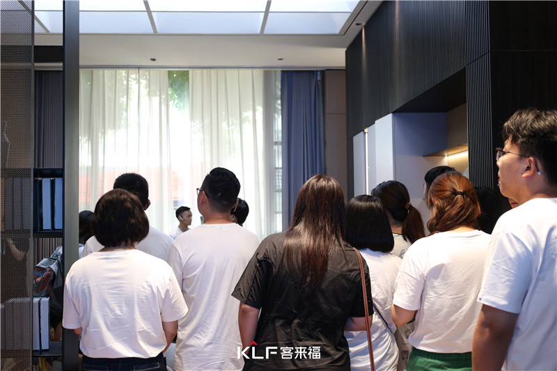 隨后,一行人走進(jìn)客來?!じ镂镎箯d及2023年新落地的13代展廳,通過親看及工作人員的講解,了解了客來福現(xiàn)有的產(chǎn)品體系及高定產(chǎn)品的研發(fā)力,肉眼可見的質(zhì)感下是客來福二十年的家居初心。