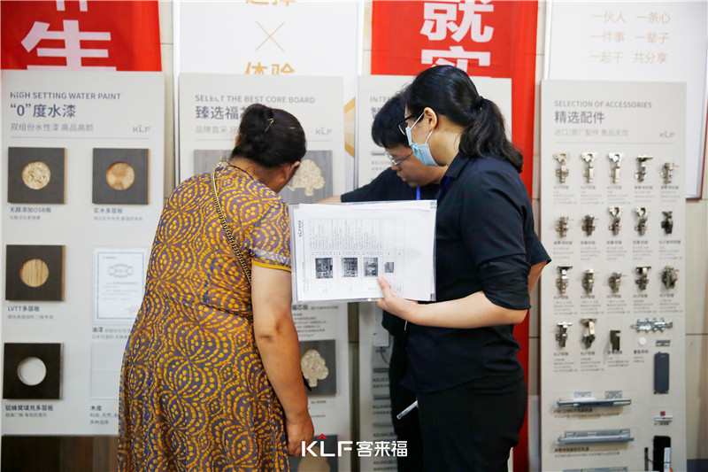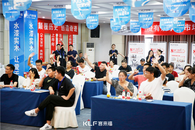 開場(chǎng)互動(dòng)結(jié)束后,負(fù)責(zé)人也向大家進(jìn)行了客來(lái)福的品牌及其產(chǎn)品介紹,讓大家了解客來(lái)福的核心板材和全屋定制。