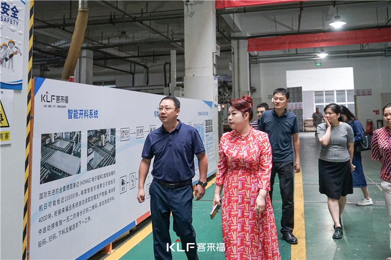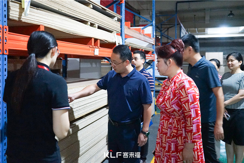 領導一行人首先參觀了客來福華東瑤海4.0工廠車間,對廠內的板材制作工藝流程、信息化、智能化生產流程進行詳盡的參觀了解,展現(xiàn)了客來福系統(tǒng)化、標準化的生產水平,以及在家居行業(yè)的品質和實力。