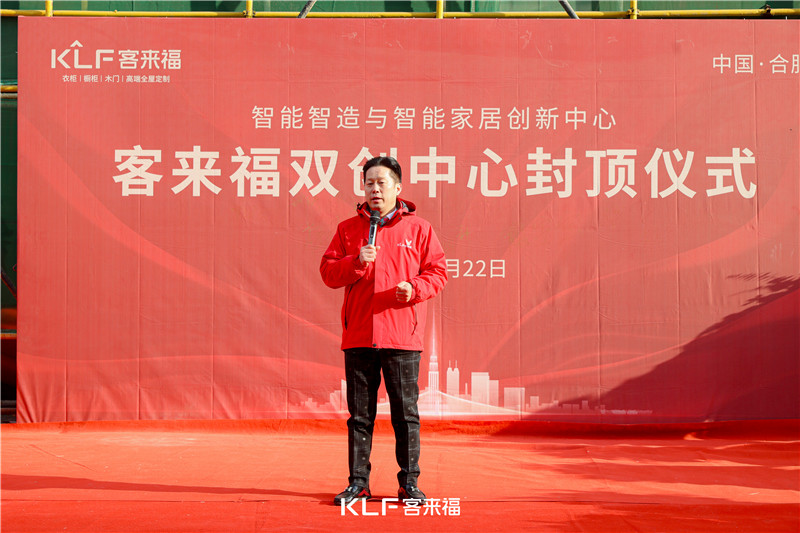 在封頂之前,客來(lái)福家居董事長(zhǎng)尹其宏先生致辭:感謝區(qū)政府、城東街道的支持,保障好的建設(shè)環(huán)境;感謝安徽中平建筑,為安全高效率生產(chǎn)保駕護(hù)航;感謝全體客來(lái)福家人的辛勤付出,見(jiàn)證客來(lái)福的發(fā)展速度。