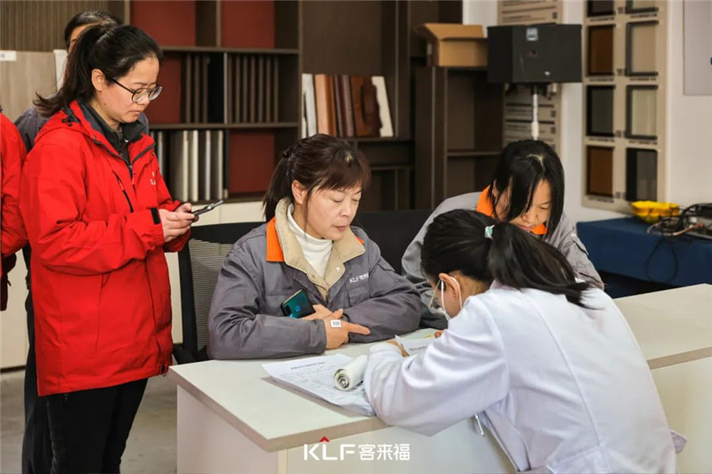 活動(dòng)現(xiàn)場(chǎng),醫(yī)護(hù)人員分項(xiàng)目給有序排隊(duì)的職工做檢查工作。認(rèn)真細(xì)致地服務(wù)在場(chǎng)女性職工,為大家提供看病就醫(yī)的便利,讓大家真切感受到客來(lái)?!盀閱T工謀福利”的幸福文化和理念。