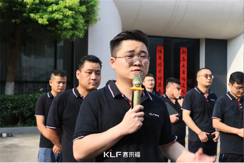 在經(jīng)過簡單的整隊后,各中心負(fù)責(zé)人匯報人員到場情況。隨后,升國旗奏國歌儀式正式拉開大會序幕。在飄揚的旗幟下,全體員工進(jìn)行企業(yè)價值觀宣讀,展現(xiàn)了客來福家人們斗志昂揚的精神面貌。