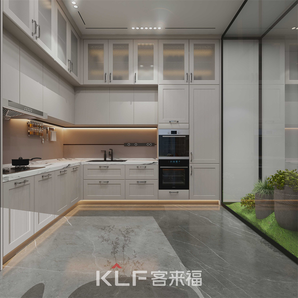 一個舒適的廚房可以給我們做飯時帶來愉悅感,家里的廚房是反映生活氣息的地方。U型的簡潔的動線設(shè)計和明確的功能區(qū)劃分使得整個烹飪變得有條不紊。無把手的櫥柜造型簡潔,美觀大氣,其時尚的氣質(zhì)滿足現(xiàn)代年輕?的審美需求。