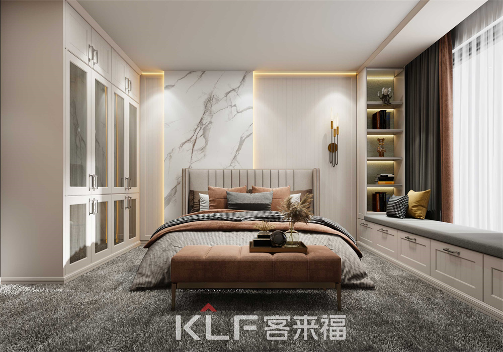 臥室的柵格背景墻和模壓護墻,做出了高定混油的產(chǎn)品效果,超晶板和巖板等超現(xiàn)代感的元素的融入,更是將簡歐這一經(jīng)典風格產(chǎn)品做了顛覆,更符合當下消費人群讓客戶生活更加自然。