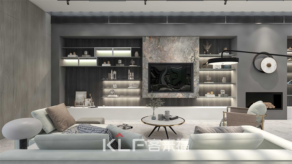 明亮的燈光點亮了空間的沉寂,背景采用柵欄式設計,為空間增添靈動感。分層次多功能的展示柜,按照入住需求進行擺放。嵌入式的電視柜設計,節(jié)省空間。